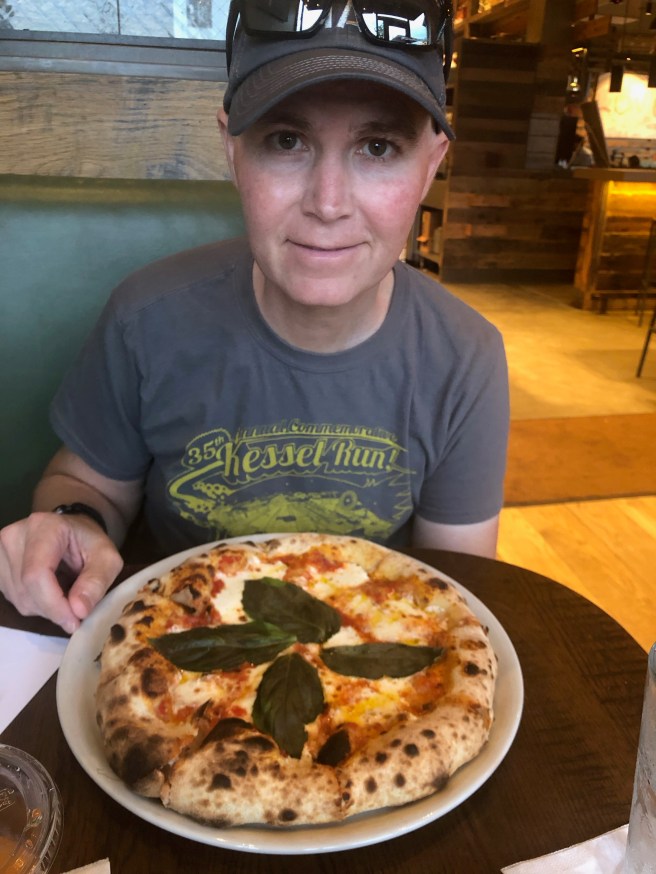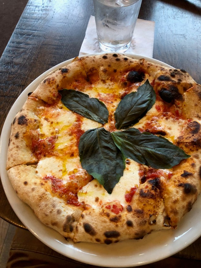 I had to include this picture again…admire the slightly charred, but billowy crust; the delicate melting of in-restaurant made mozzarella; and the deep red color of San Marzano tomatoes! Perfetto!